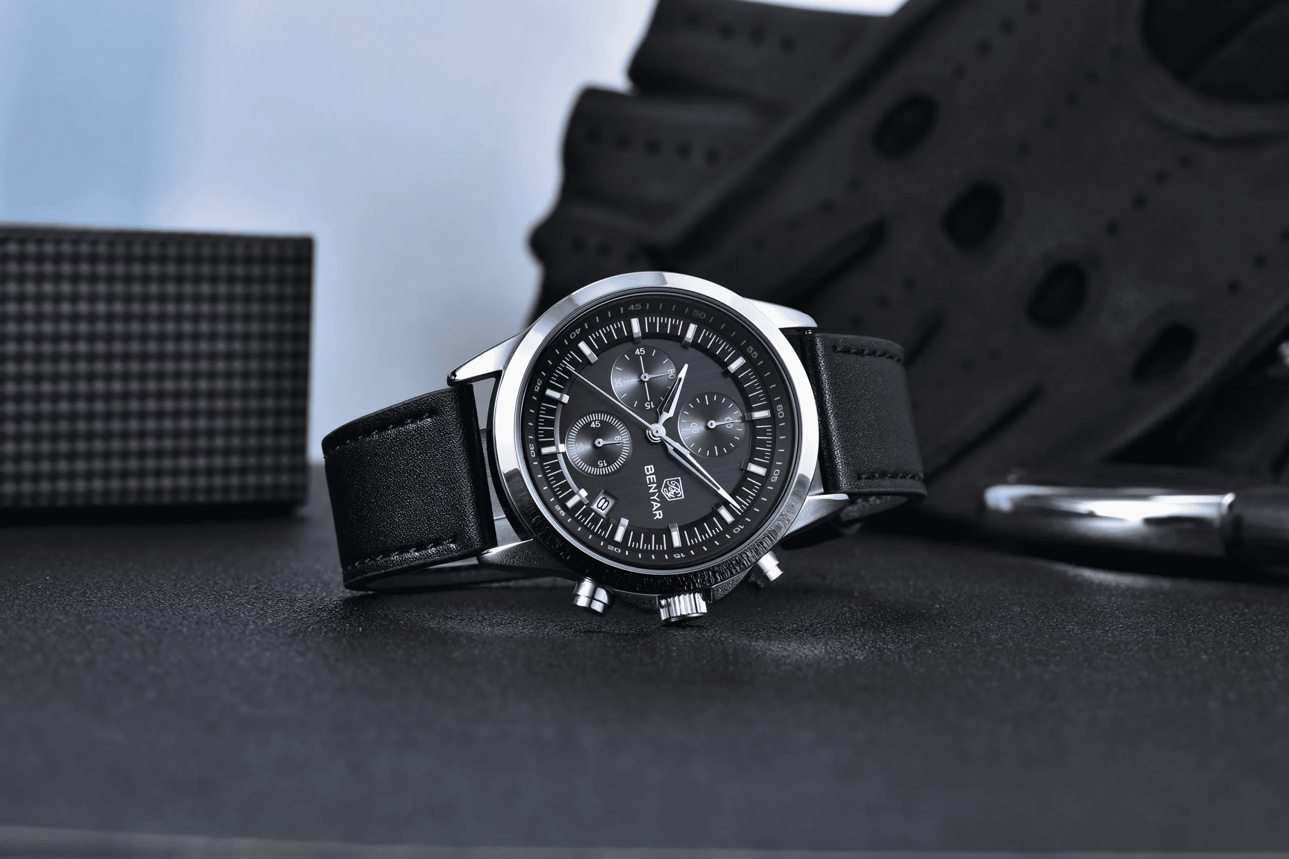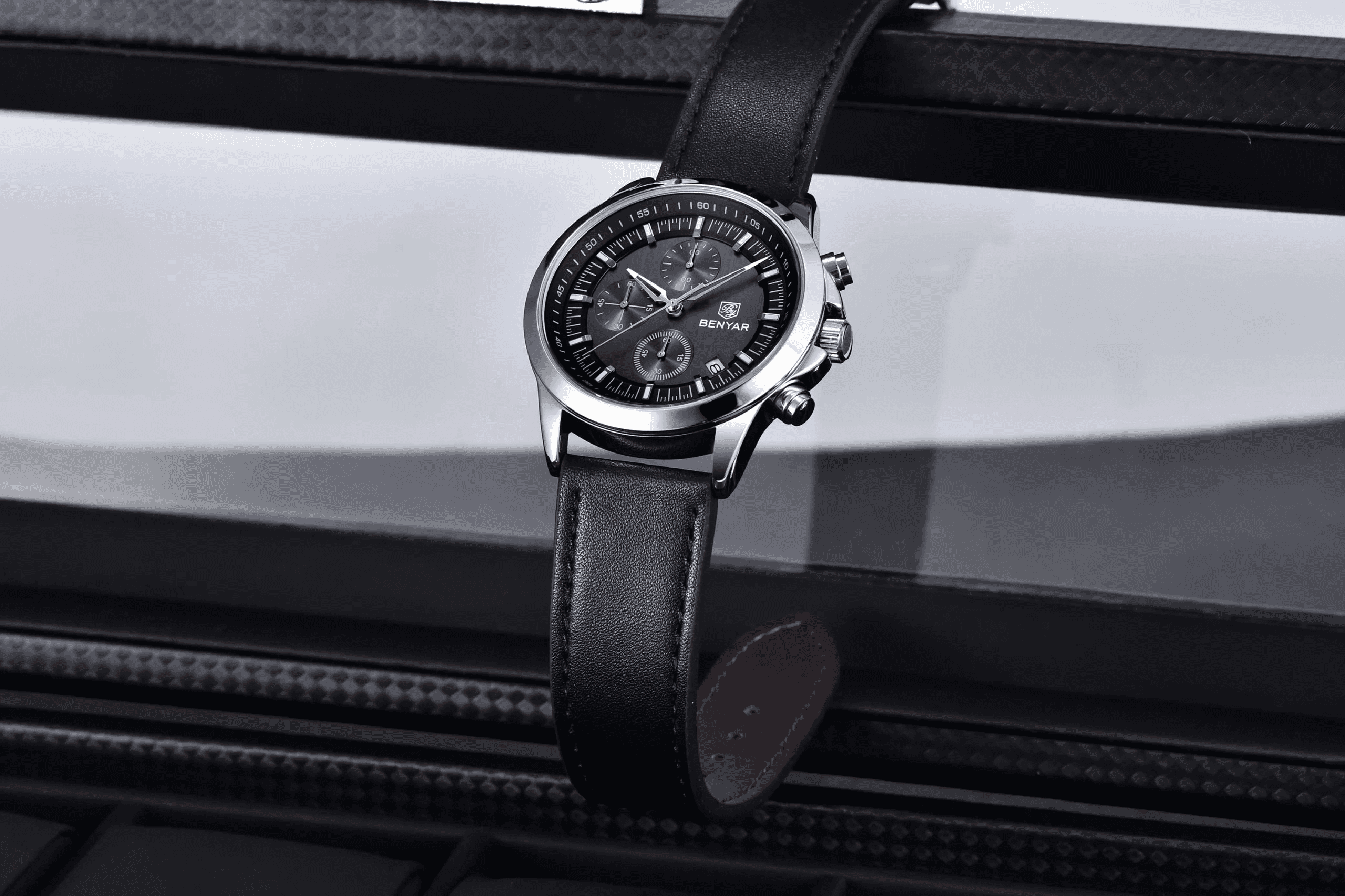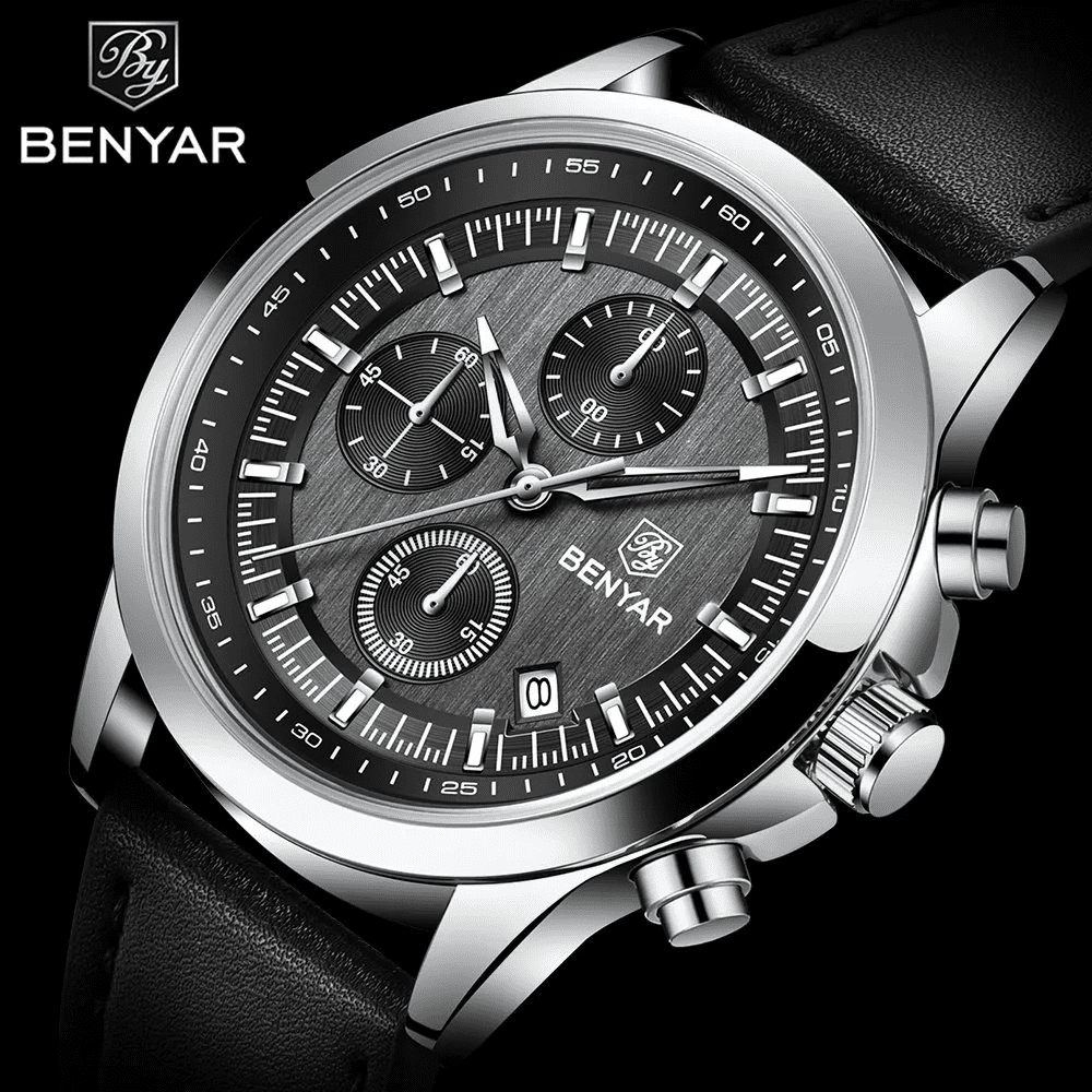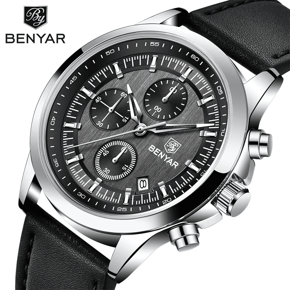 Benyar BY 5210 Ultrachron Black & Silver Colour | Premium Straps Watch