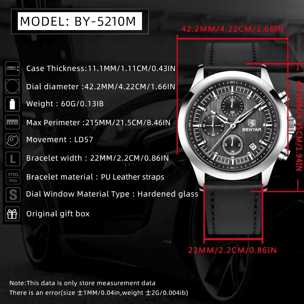 Upgrade your wrist game with the Benyar BY 5210 Ultrachron Black & Silver Colour Watch, a perfect combination of luxury, precision, and durability. Designed for men who appreciate premium timepieces, this watch features a sleek black and silver dial, high-quality strap, and Ultrachron precision movement, making it ideal for both casual and formal occasions.
