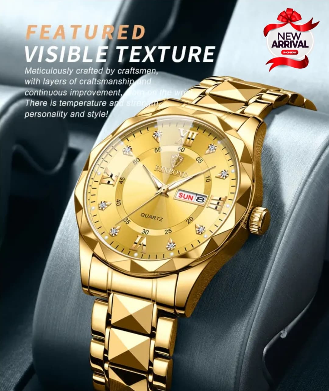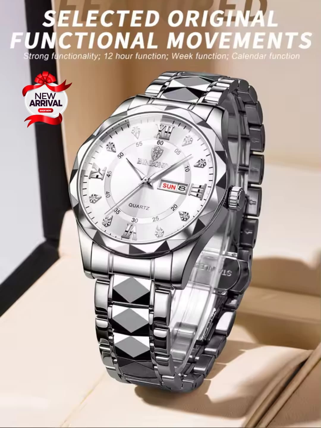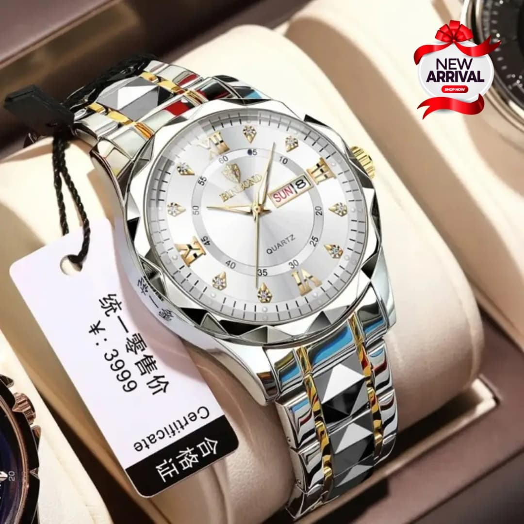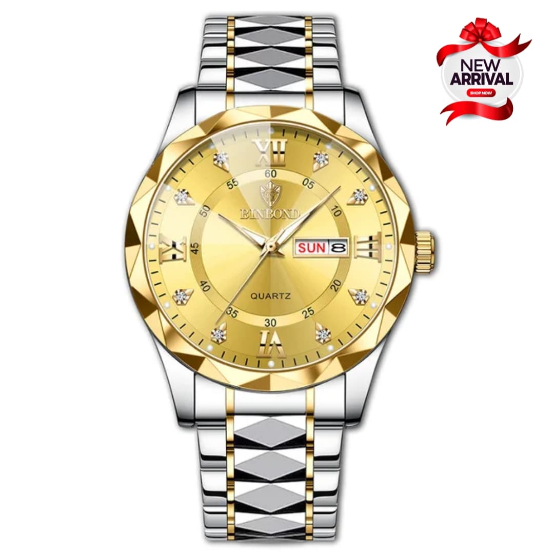 BINBOND Original Watch is the perfect blend of luxury, style, and functionality. Designed for the modern gentleman, this watch features a striking diamond-style stainless steel chain, housed in a durable brass case. With day and date functionality and availability in five unique color variants, this timepiece suits both casual and formal wear.