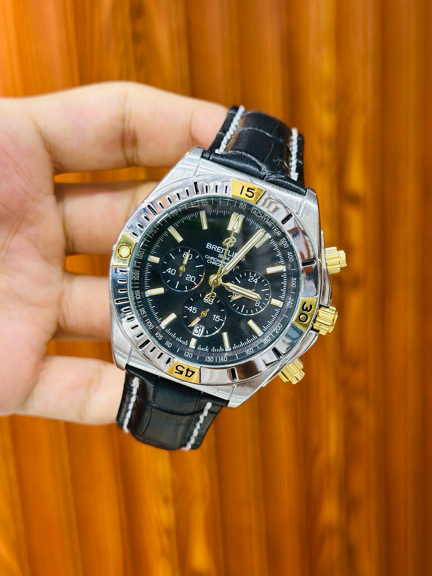 BREITLING Chronograph Watch – Master Quality | Leather Strap Edition