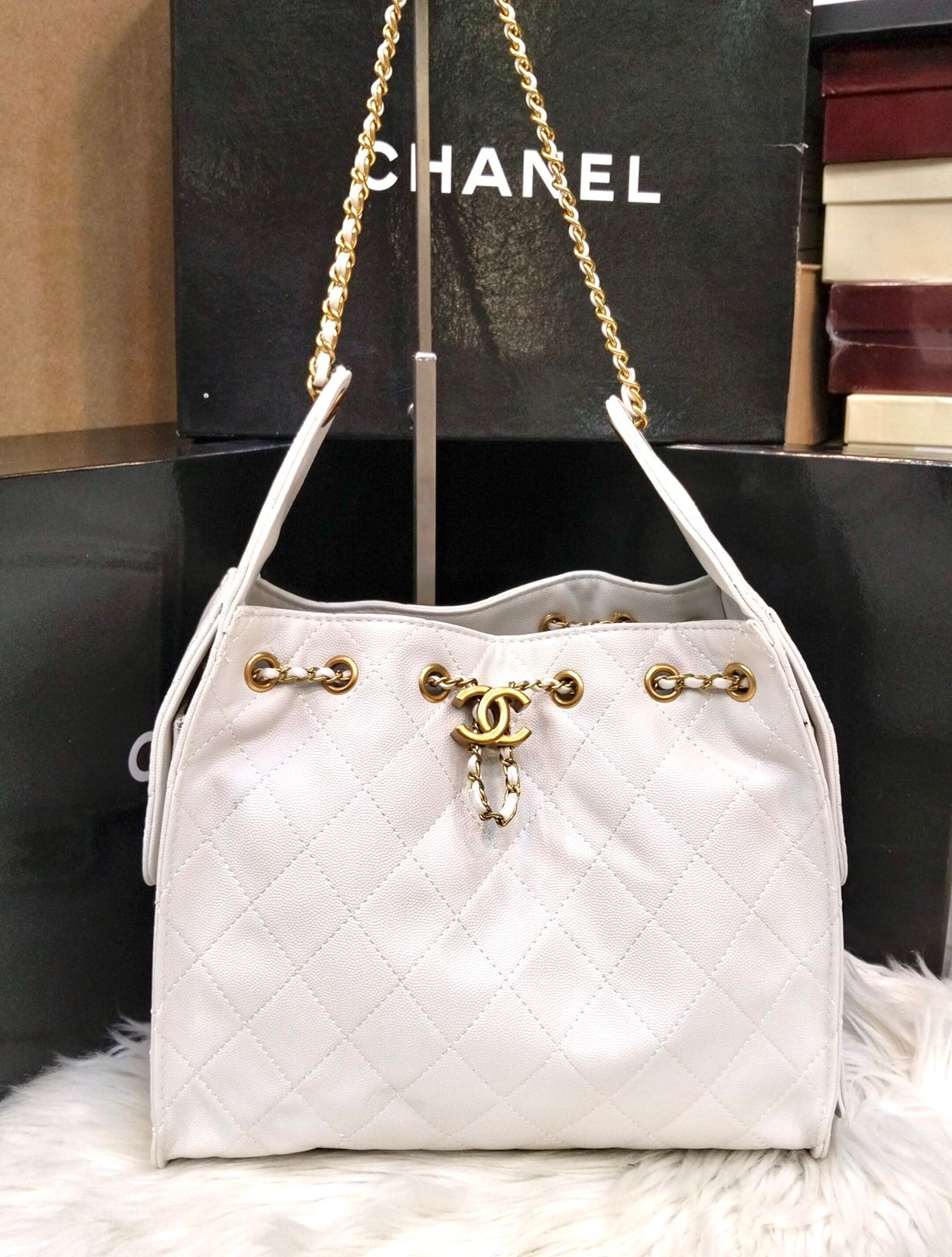 Made from high-quality caviar material, this bag is known for its textured finish that resists scratches and maintains its premium look over time. The antique gold hardware adds a vintage luxury touch, making it suitable for both casual outings and formal occasions.