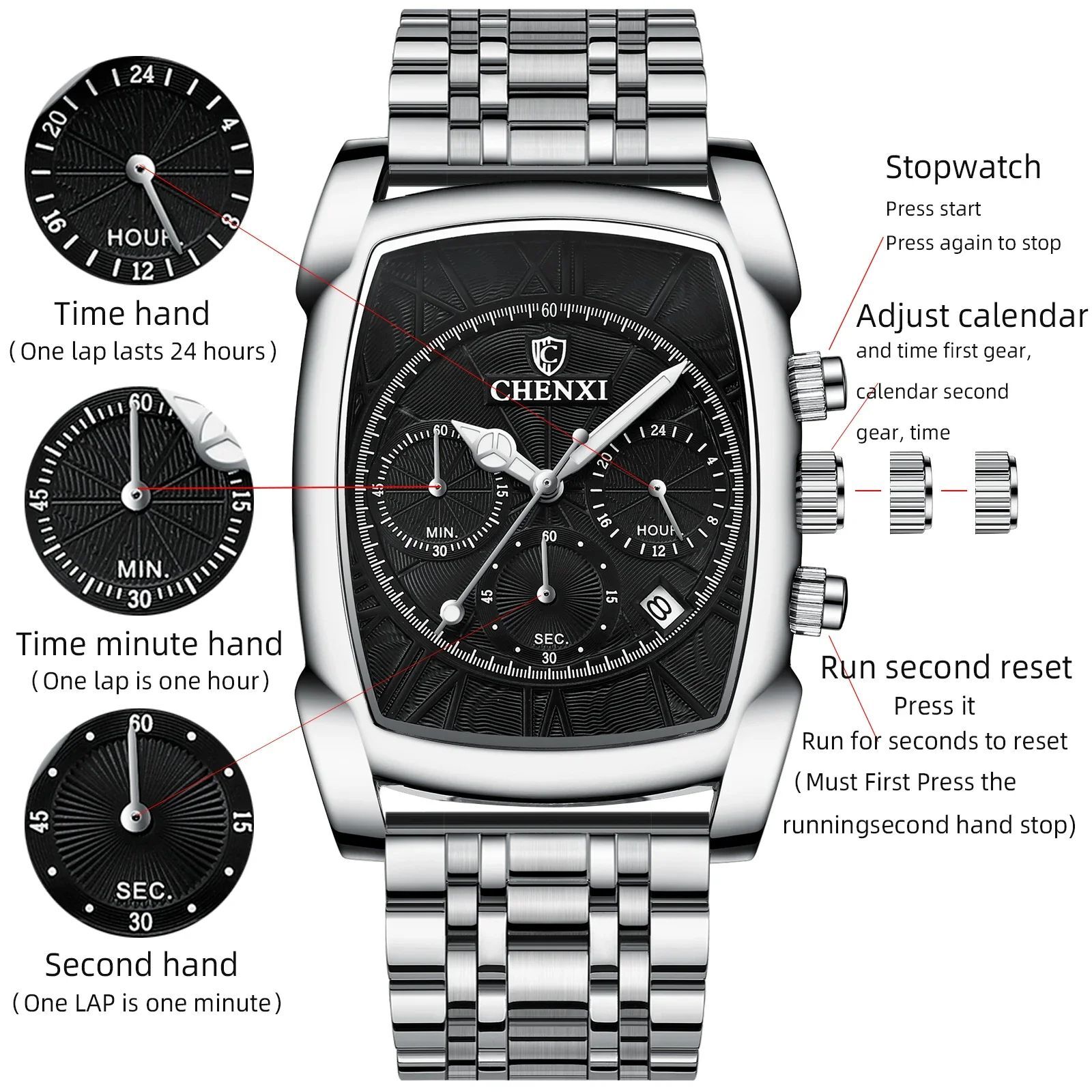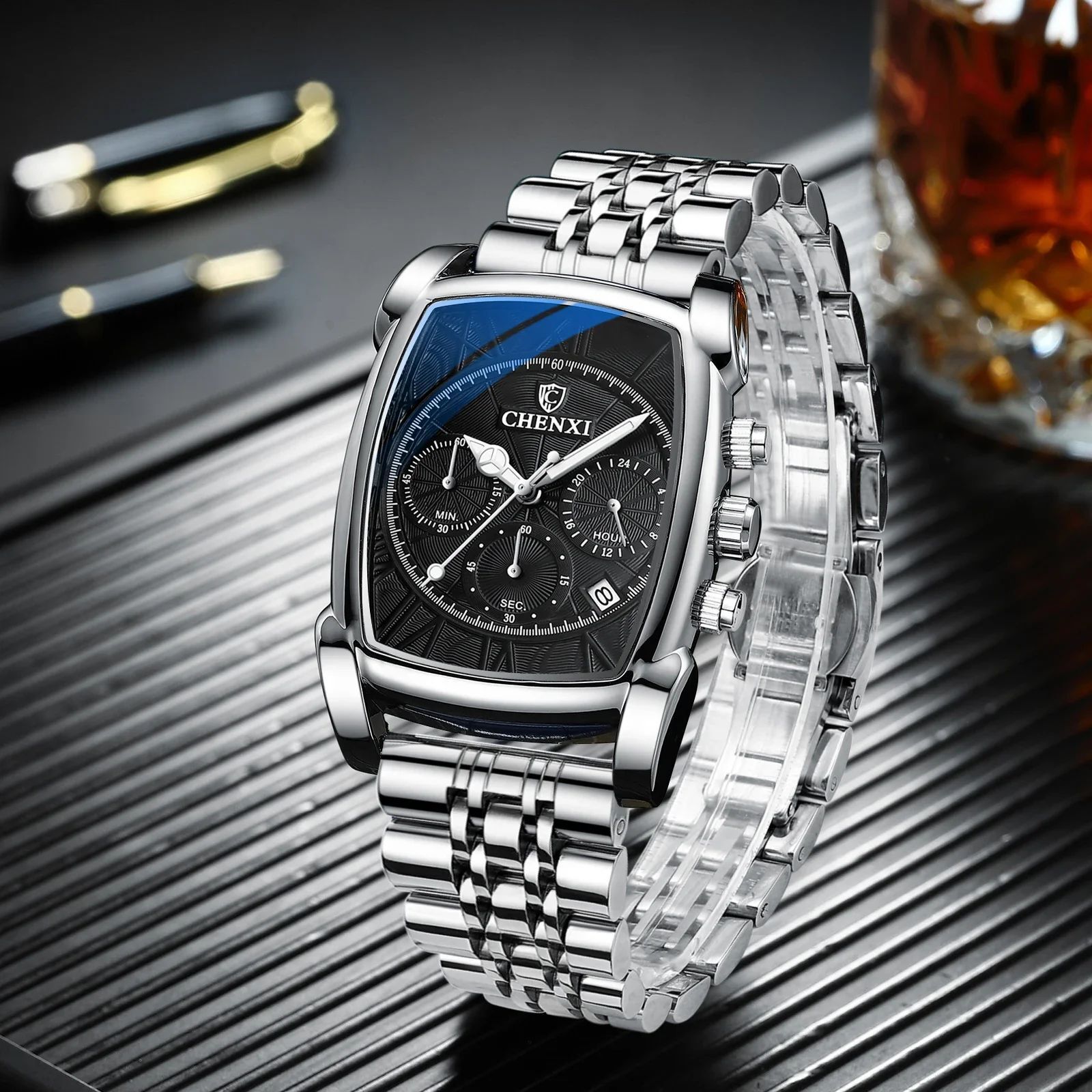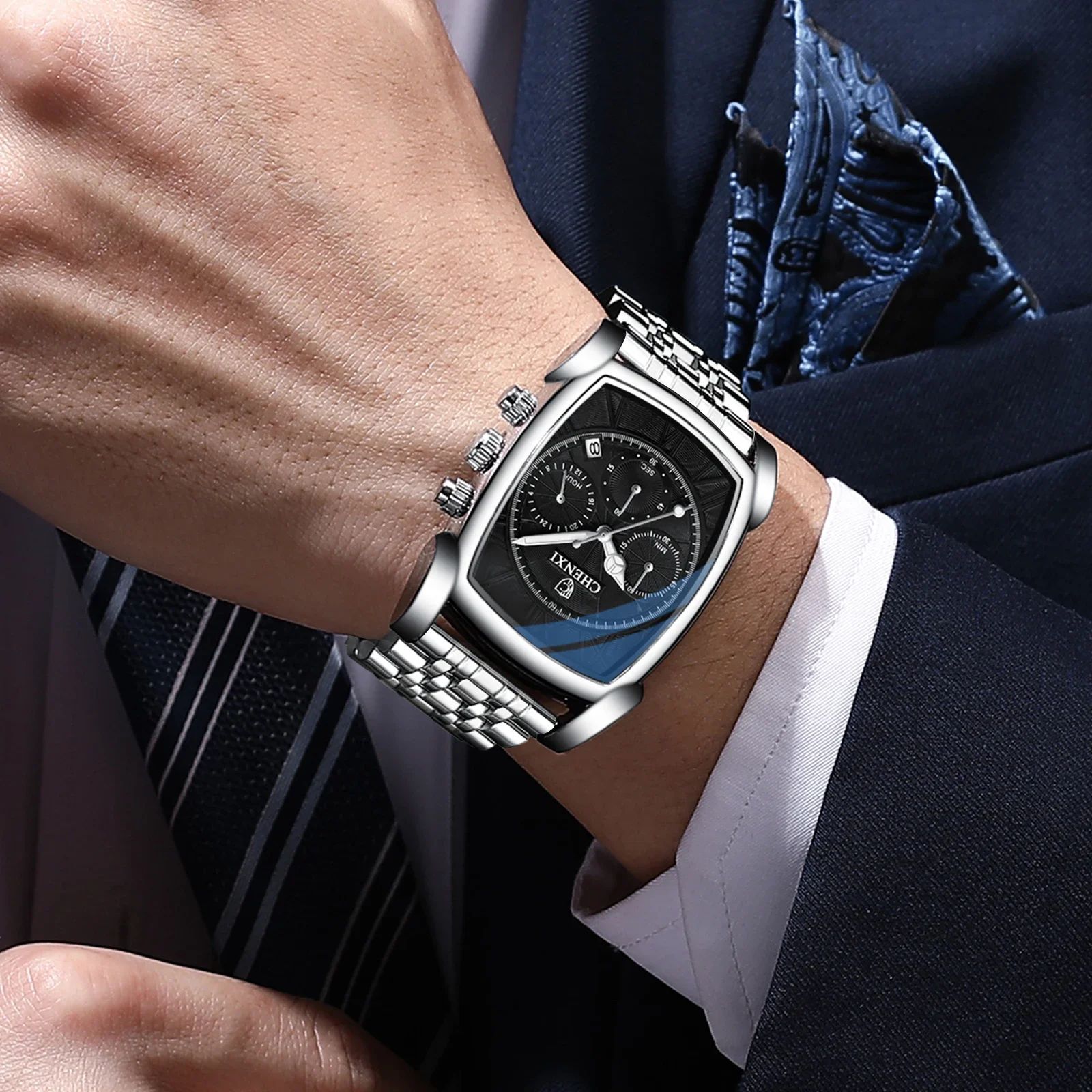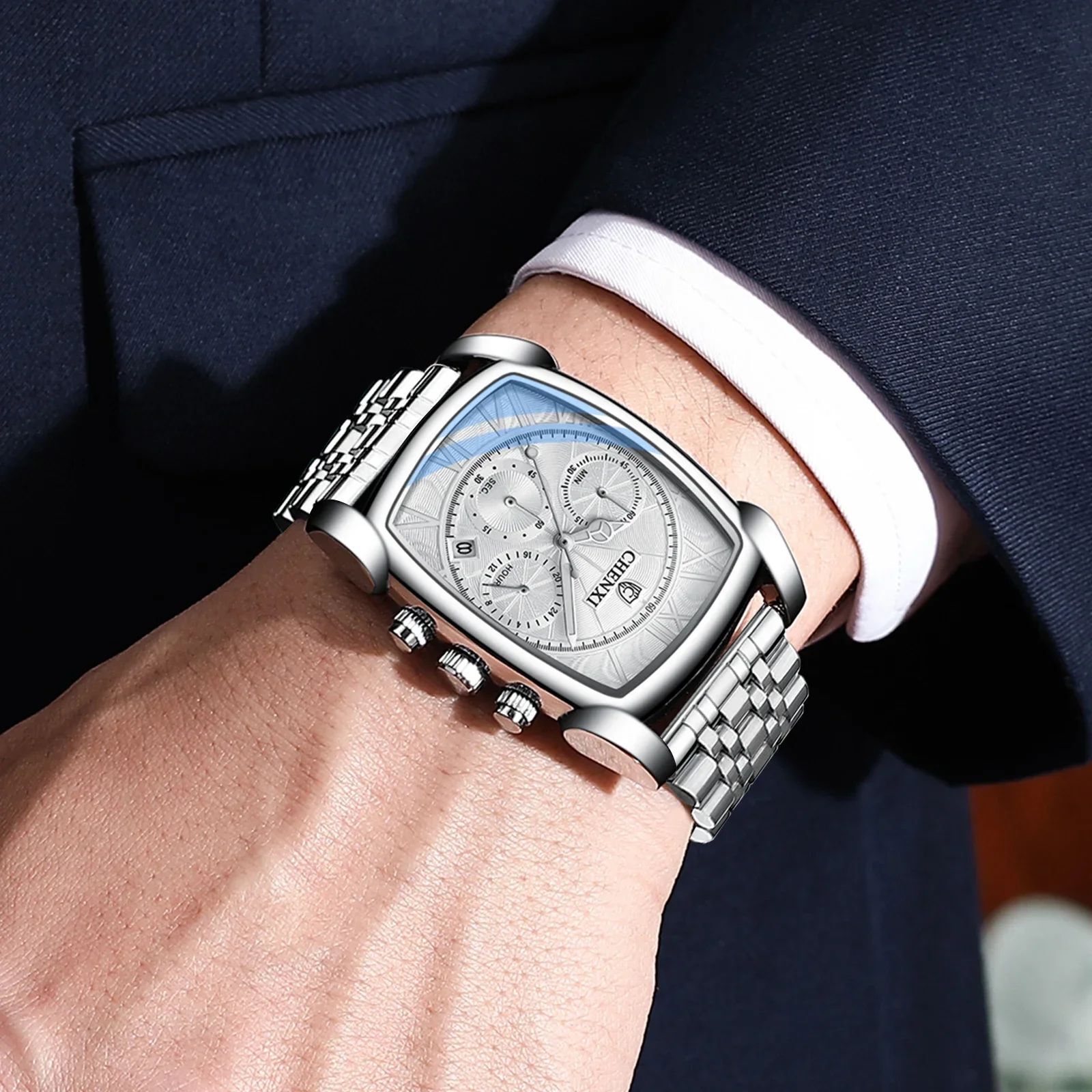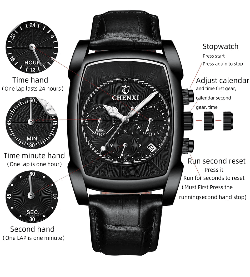CHENXI 909 Classic Square Dial Chronograph Watch for Men