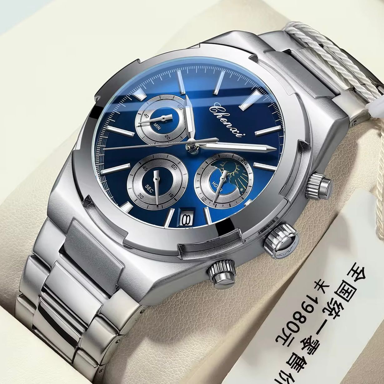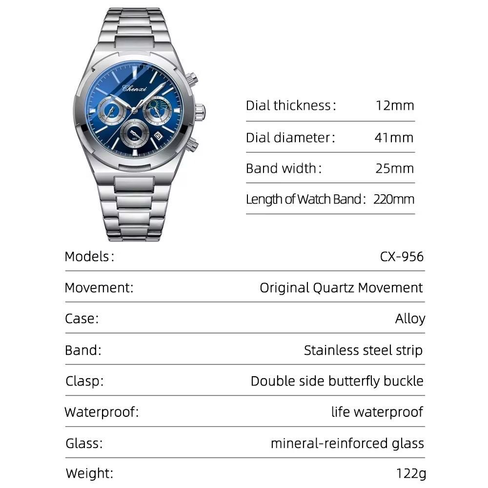 Upgrade your wrist game with the CHENXI Original Watch – a stunning timepiece that combines elegance with function. Designed for modern men who value both style and precision, this square-dial watch is a statement piece with fully functional chronograph and moonphase features.