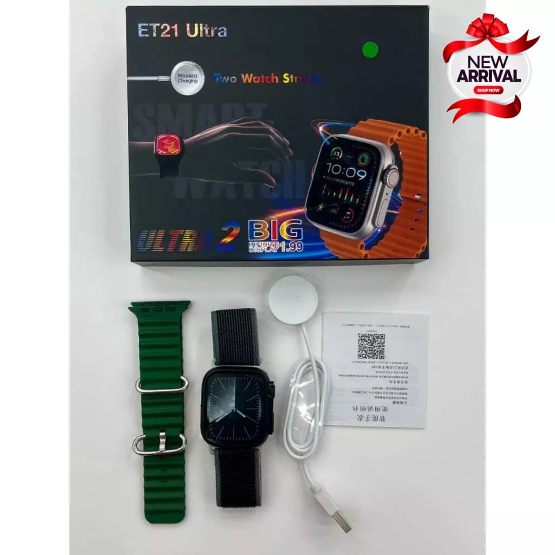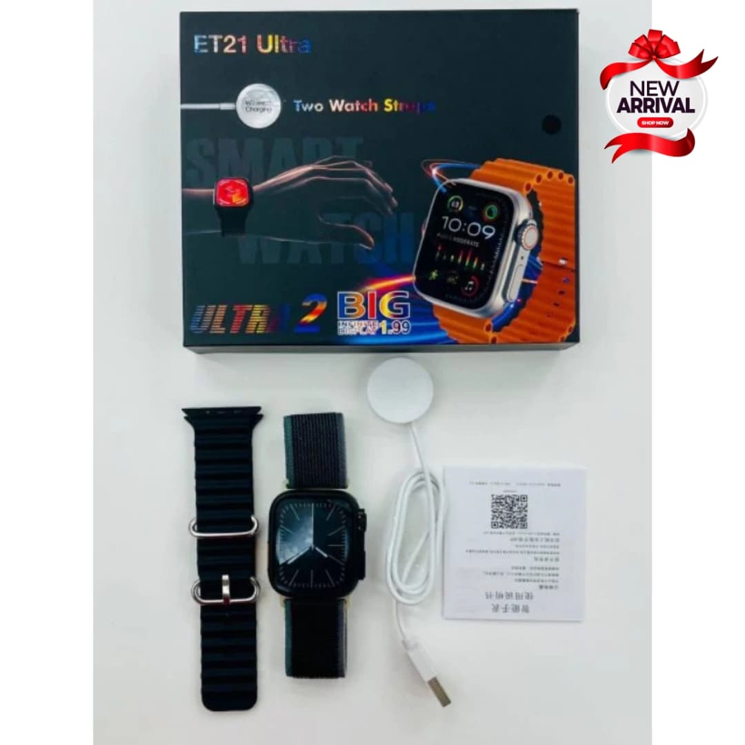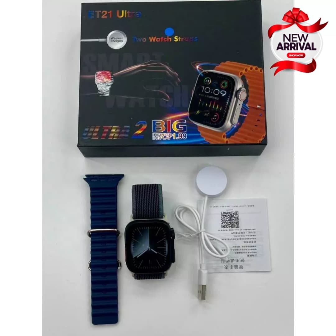 Introducing the ET21 Ultra Watch, designed for the modern lifestyle with a 2.19-inch infinite display, Bluetooth calling, and an array of smart features to keep you connected, active, and in control. Whether you’re tracking your health or receiving calls on the go, this smartwatch is the perfect companion.