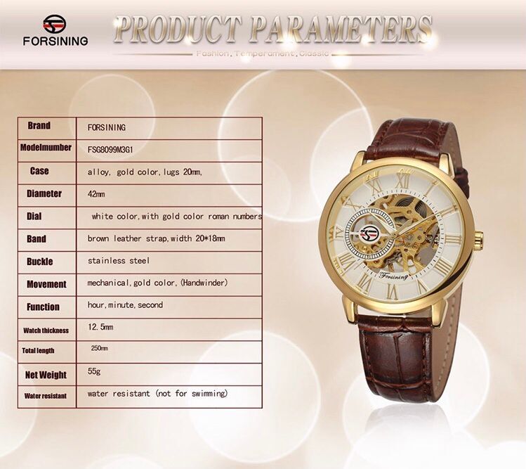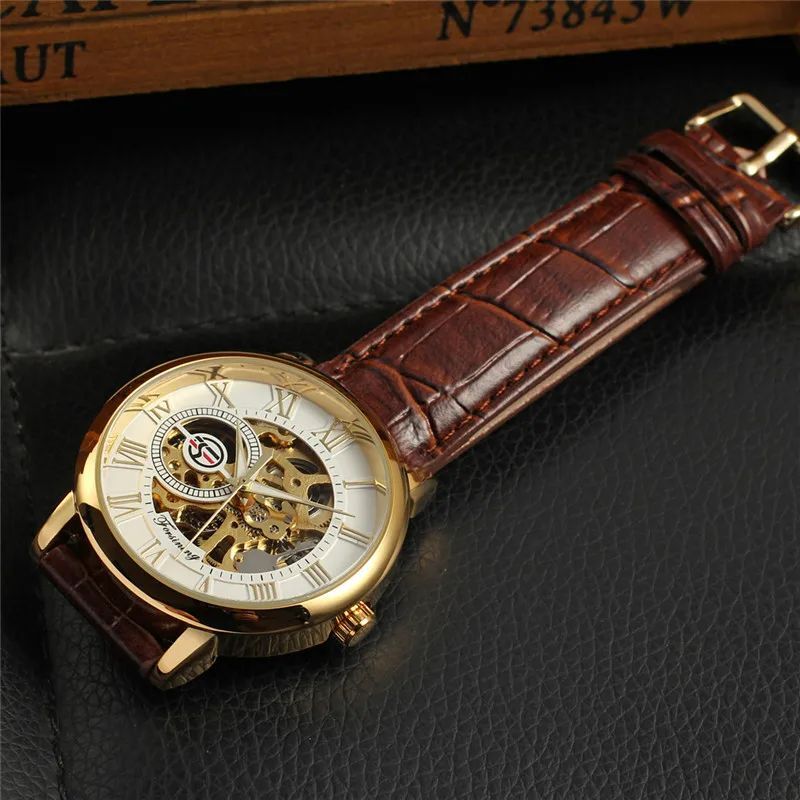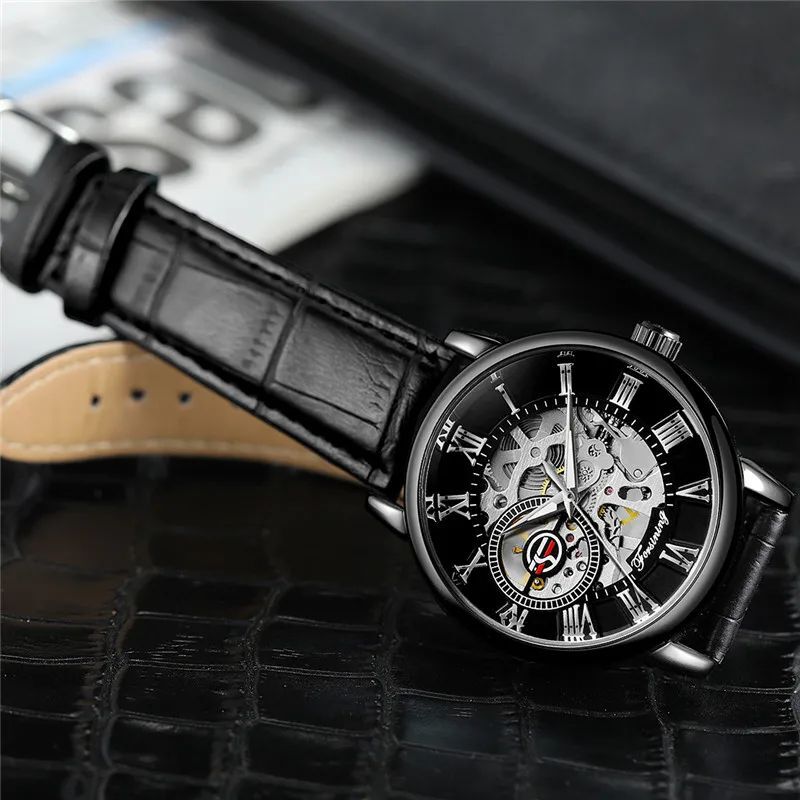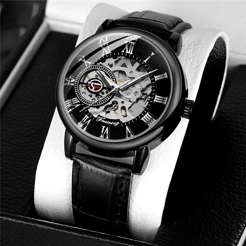 Discover timeless elegance with the FORSINING Automatic Strap Skeleton Watch. This meticulously designed timepiece blends classic style with modern craftsmanship, featuring a transparent skeleton dial that reveals the intricate mechanical movement beneath. The automatic self-winding mechanism ensures precise timekeeping without the need for batteries, making it both functional and stylish. The durable stainless steel case, comfortable leather strap, and water-resistant design make it perfect for both casual wear and special occasions.