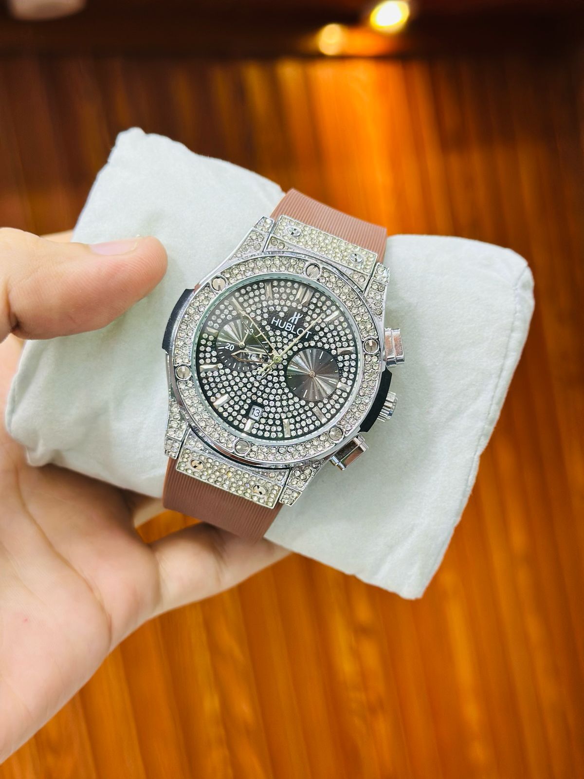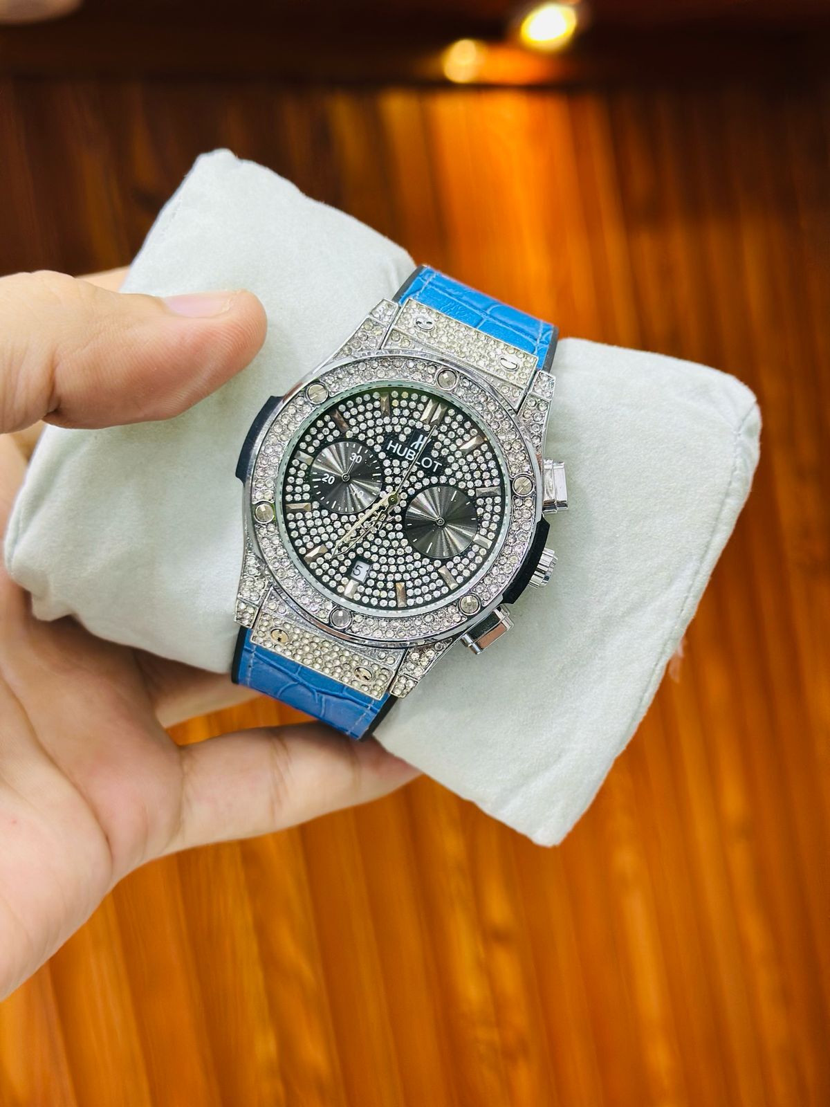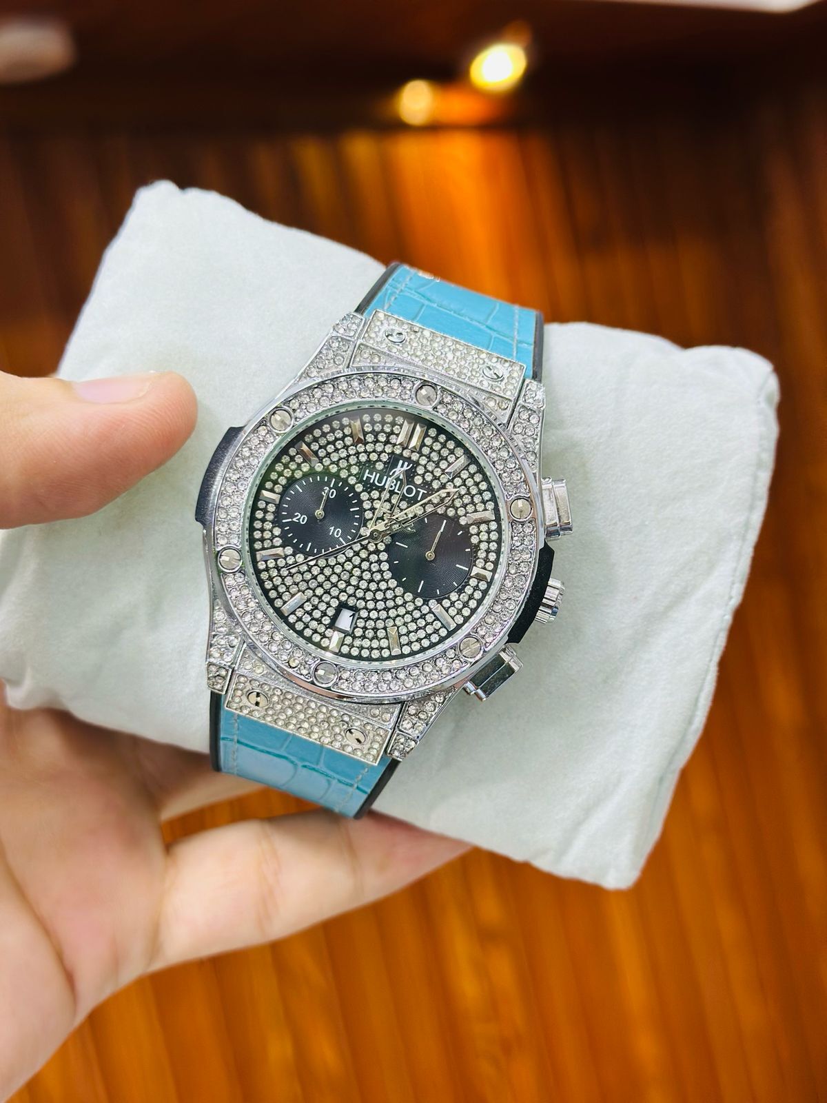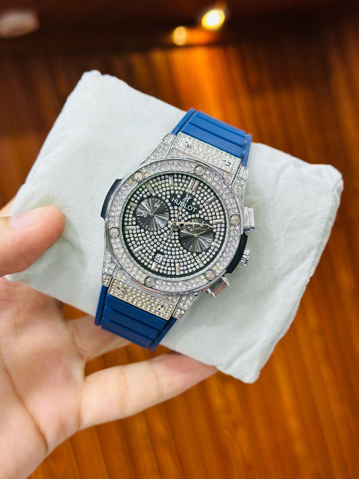 Shine brighter with the HUBLOT Stone Case Watch Replica, featuring a dazzling full-stone bezel case, premium leather strap, and fully working chronograph and stopwatch functions. Designed with attention to detail, this luxury-inspired replica is perfect for those who love to make bold style statements.