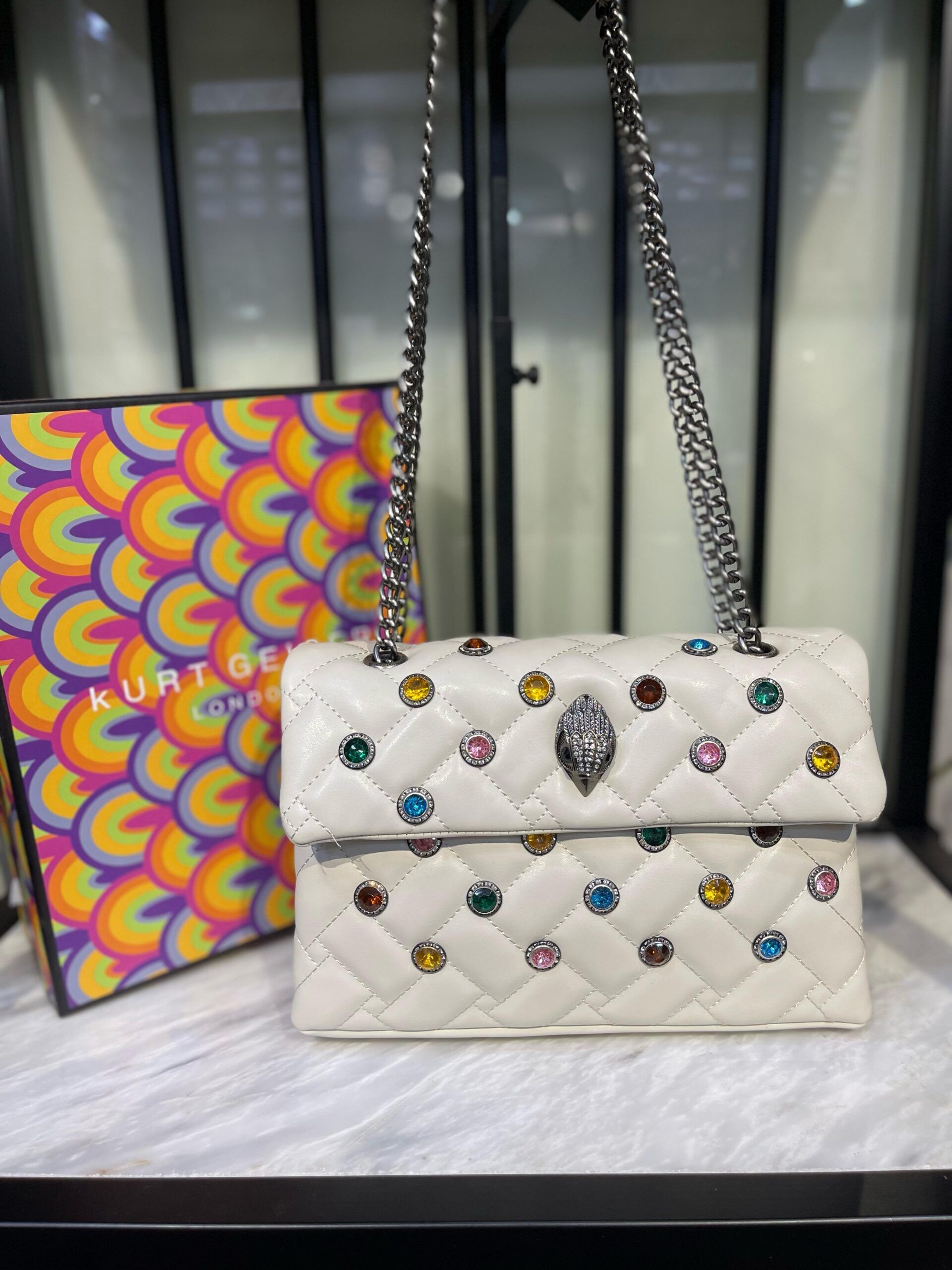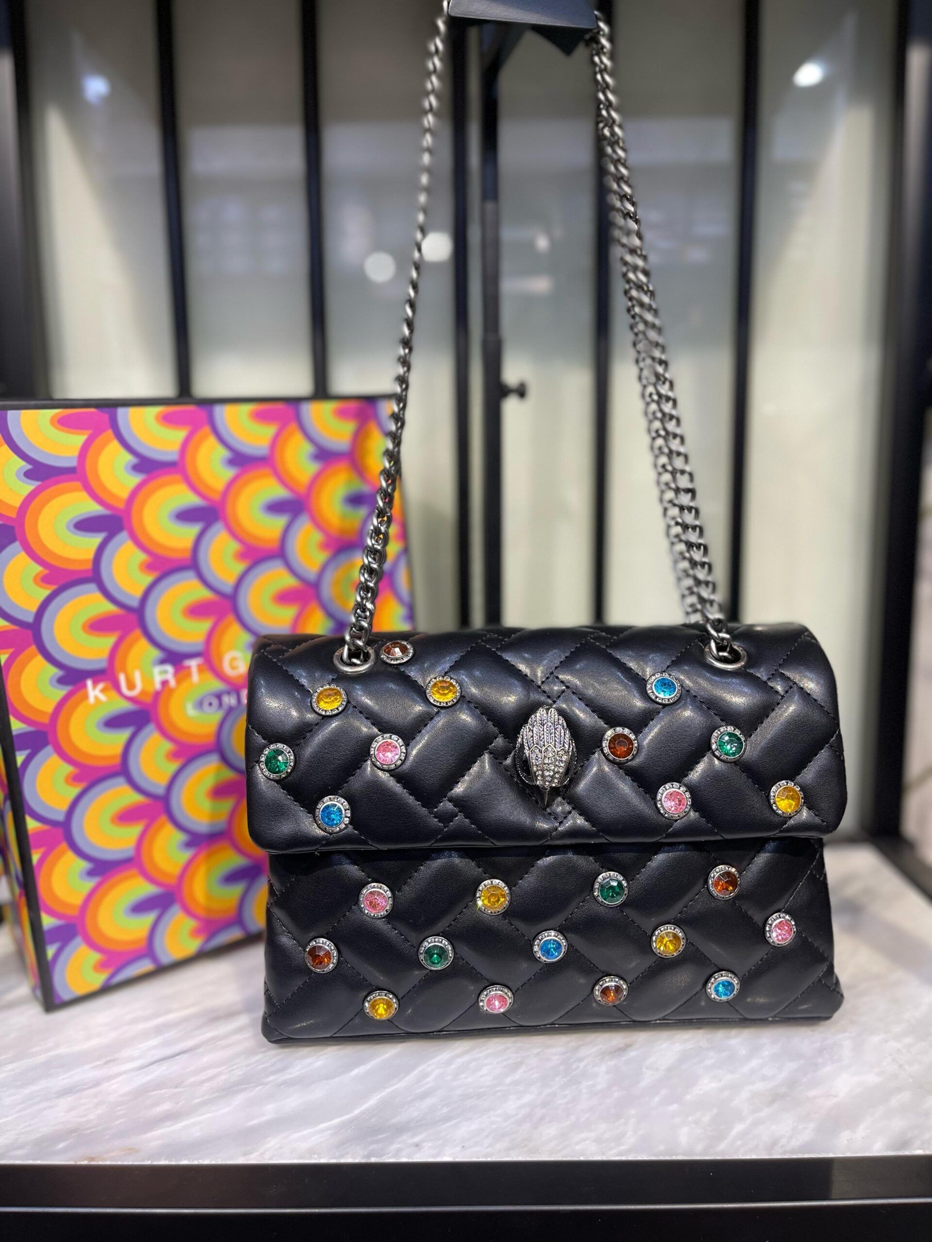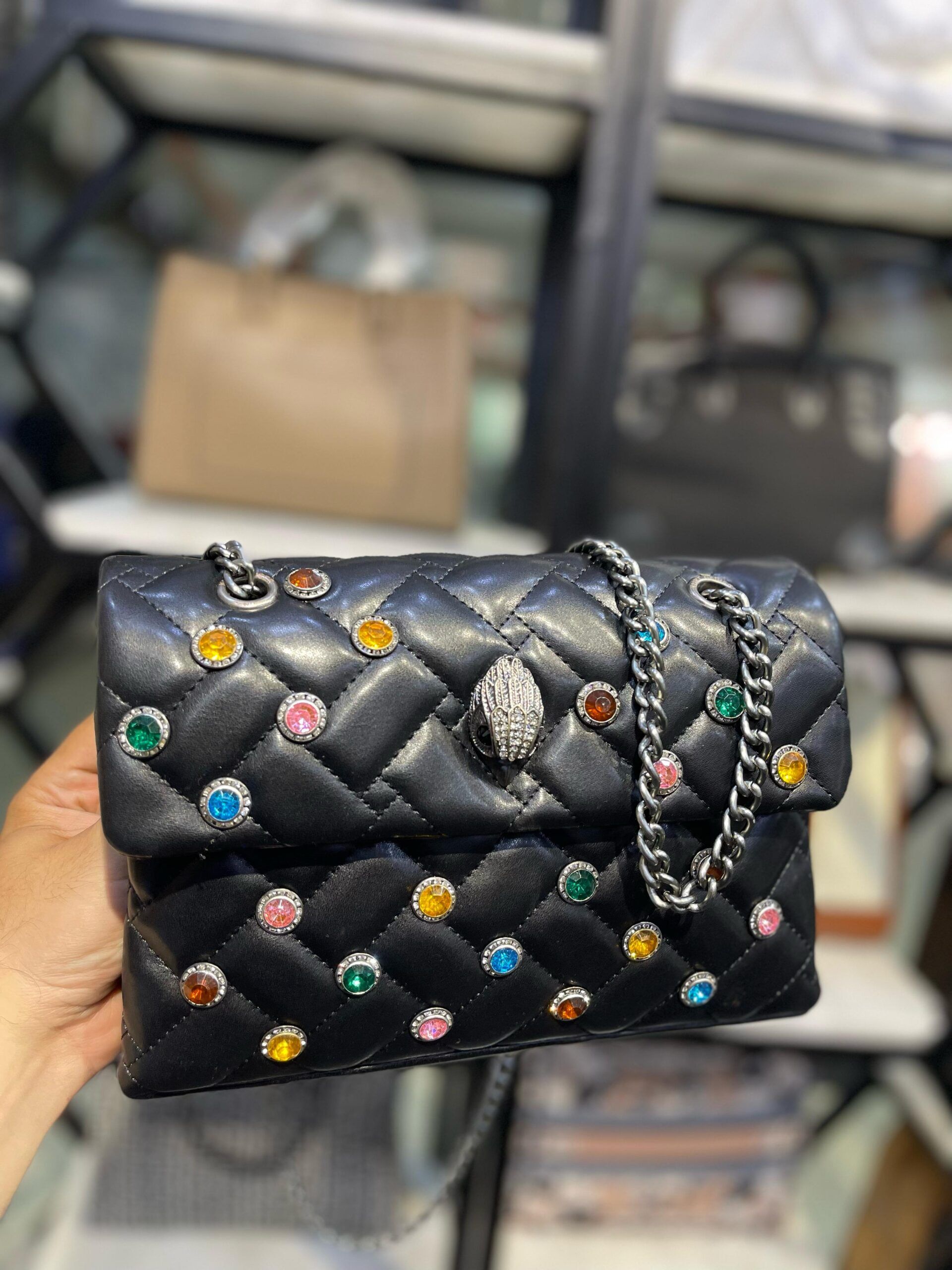 Luxury Designer Shoulder Bag – Multi-Colour Crystals & Signature Eagle Head