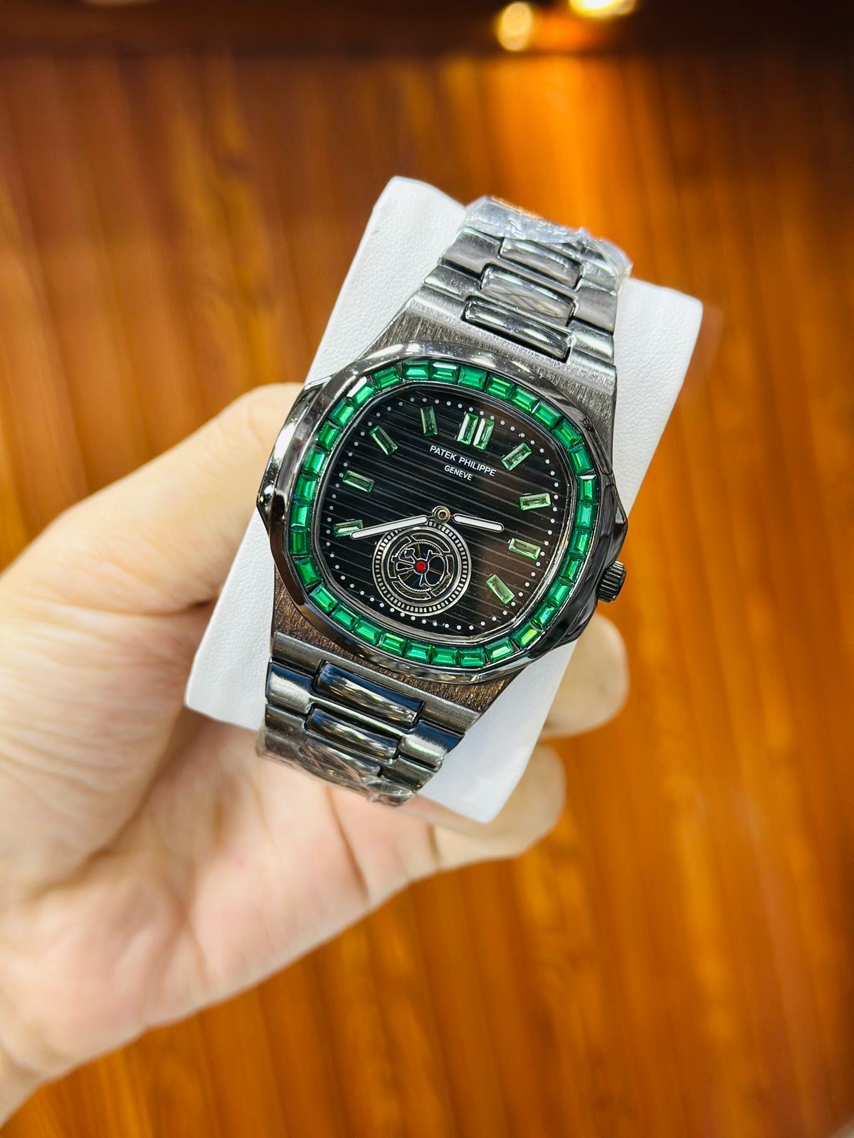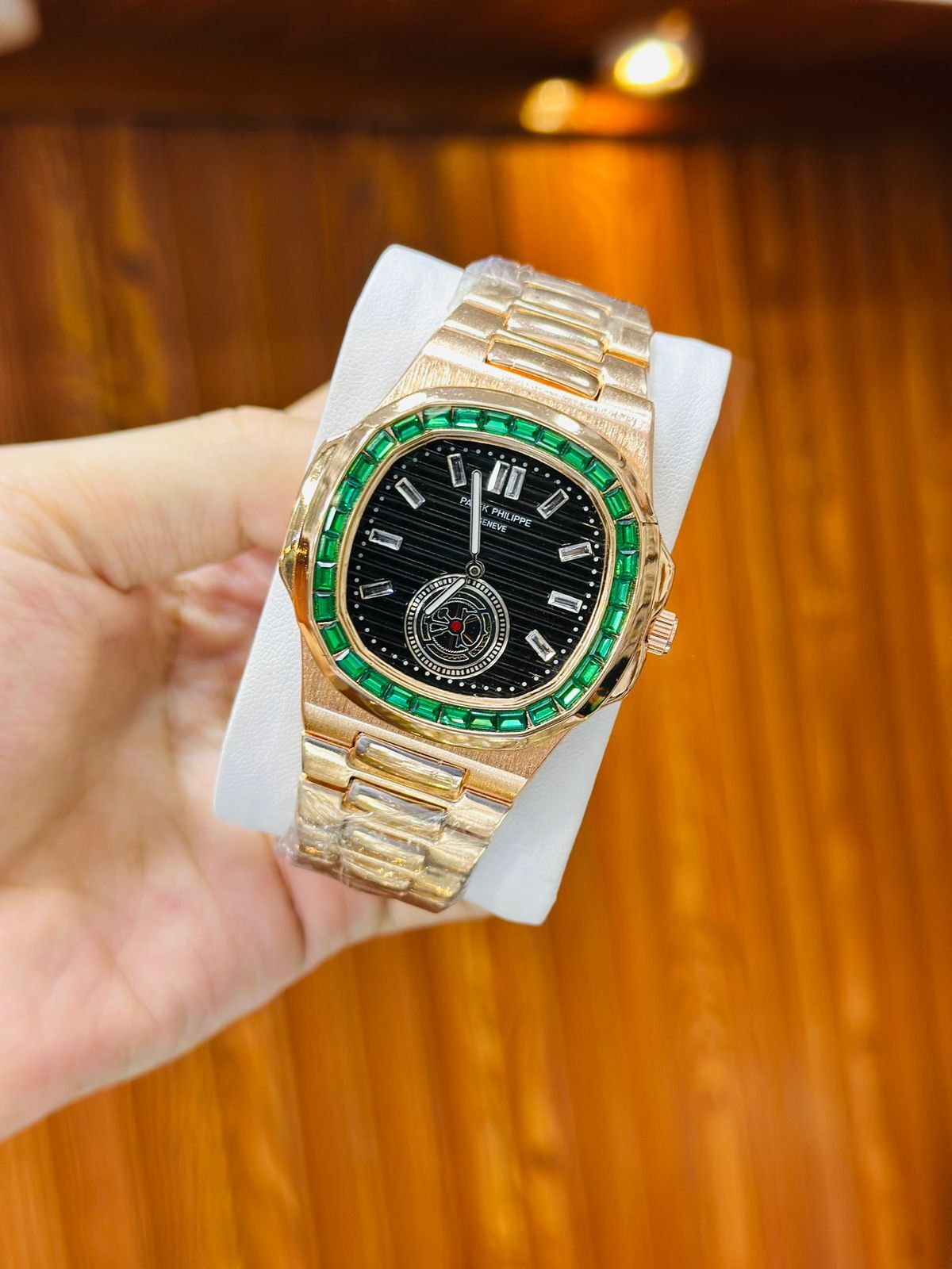 Elevate your style with the PP Rubi Stone Watch, a luxurious timepiece inspired by Patek Philippe. Featuring a square-shaped dial, premium stone embellishments, and an elegant design, this watch is perfect for those who appreciate sophistication and luxury. Whether you’re dressing up for a special occasion or looking to make a statement, this watch is the perfect choice.