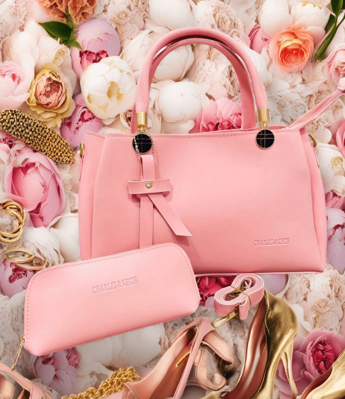 2 Pcs Ladies Hand Bag | Women 2pcs Bag | Pink Bag with Zipper Wallet