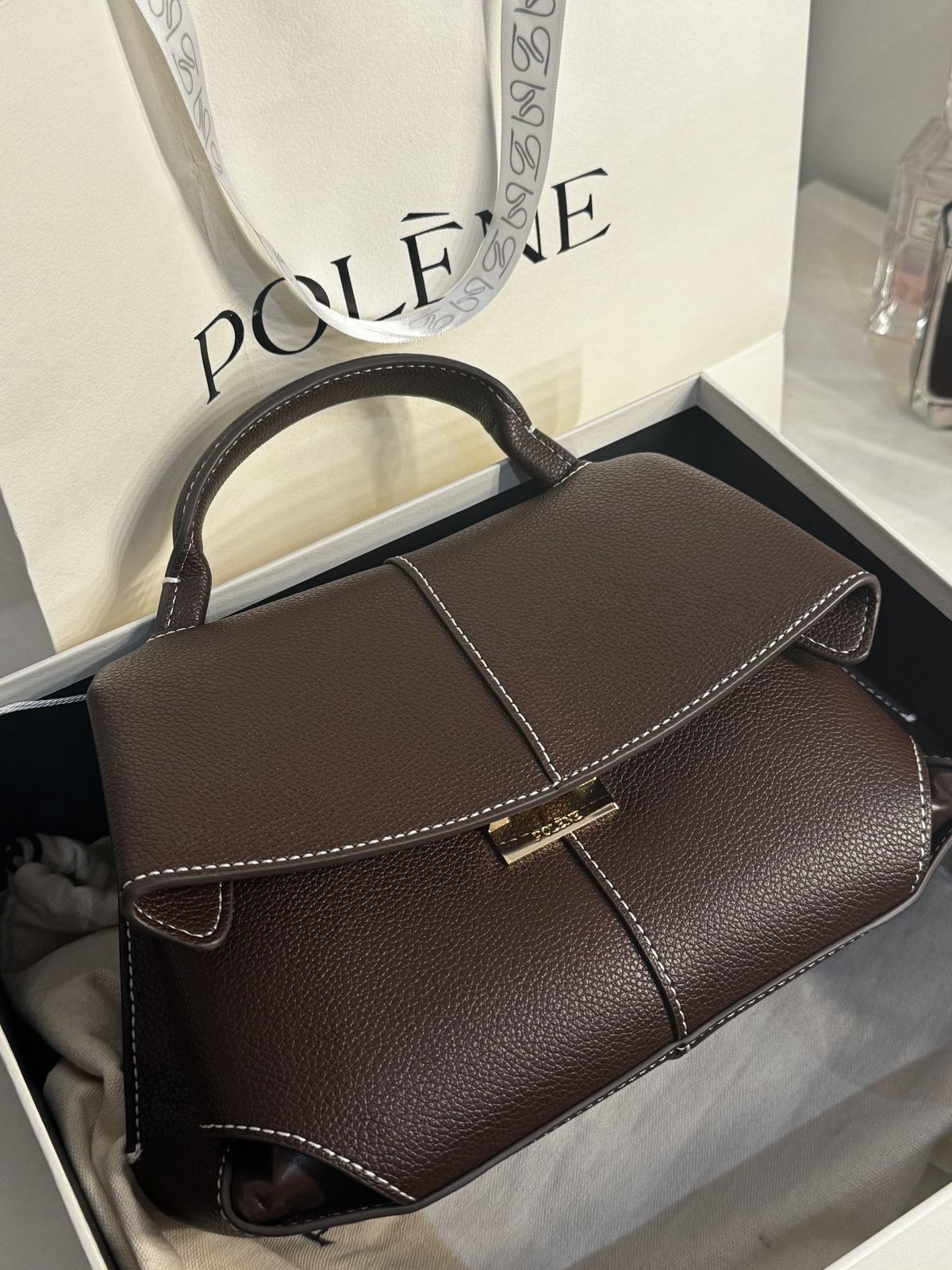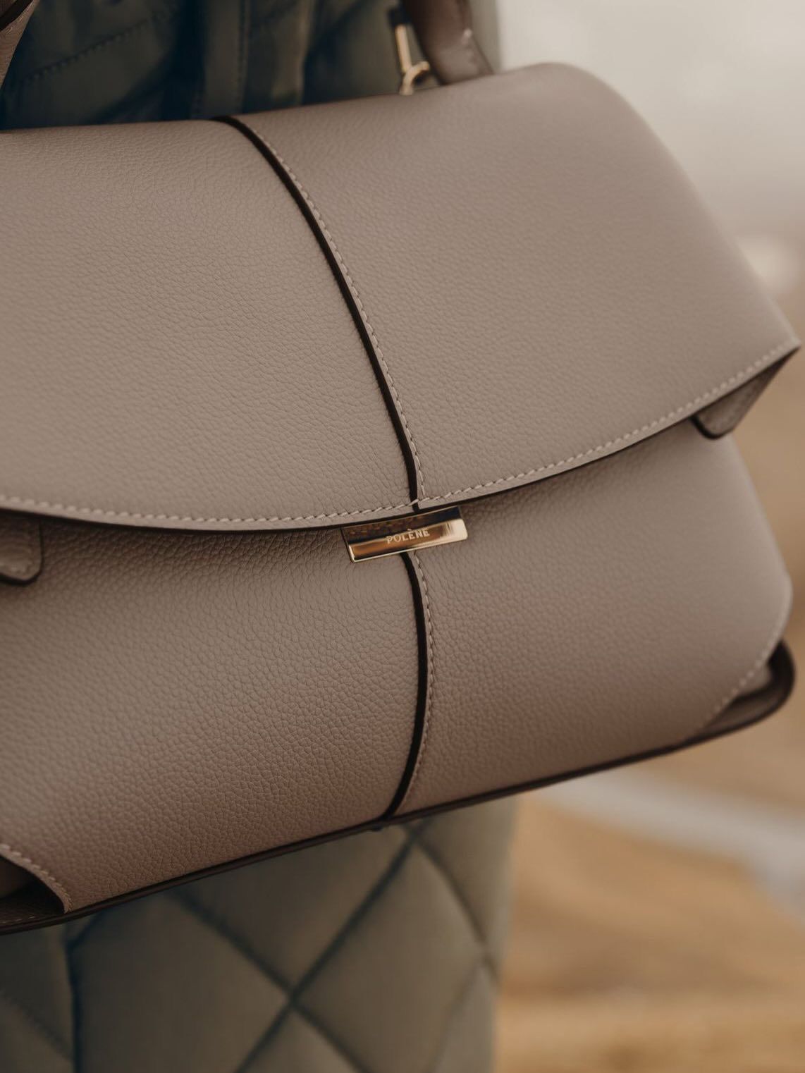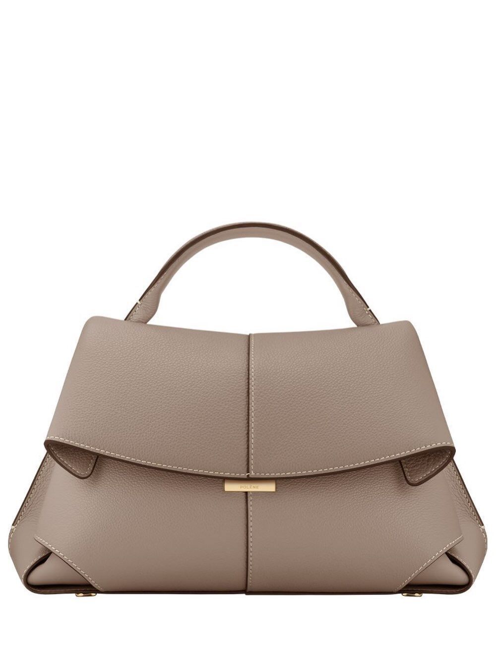 👜 POLENE Mokki Textured Taupe Handbag – Premium Leather Designer Bag