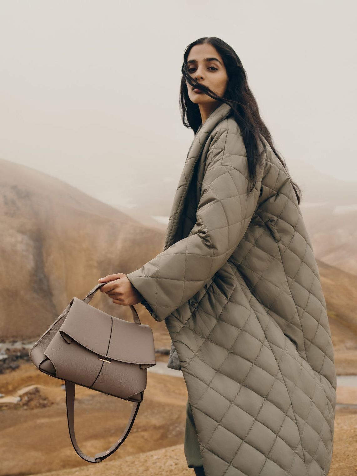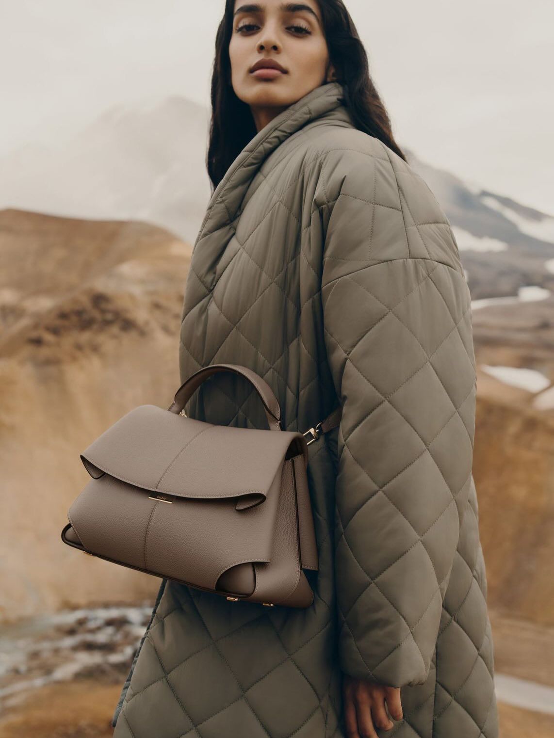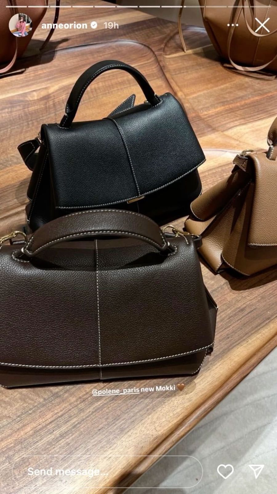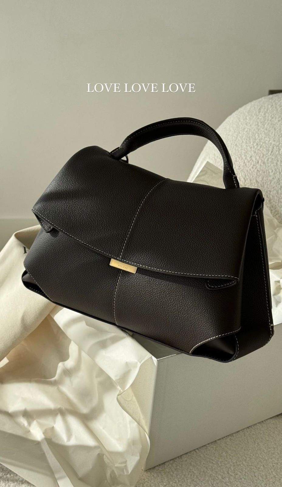 👜 POLENE Mokki Textured Taupe Handbag – Premium Leather Designer Bag