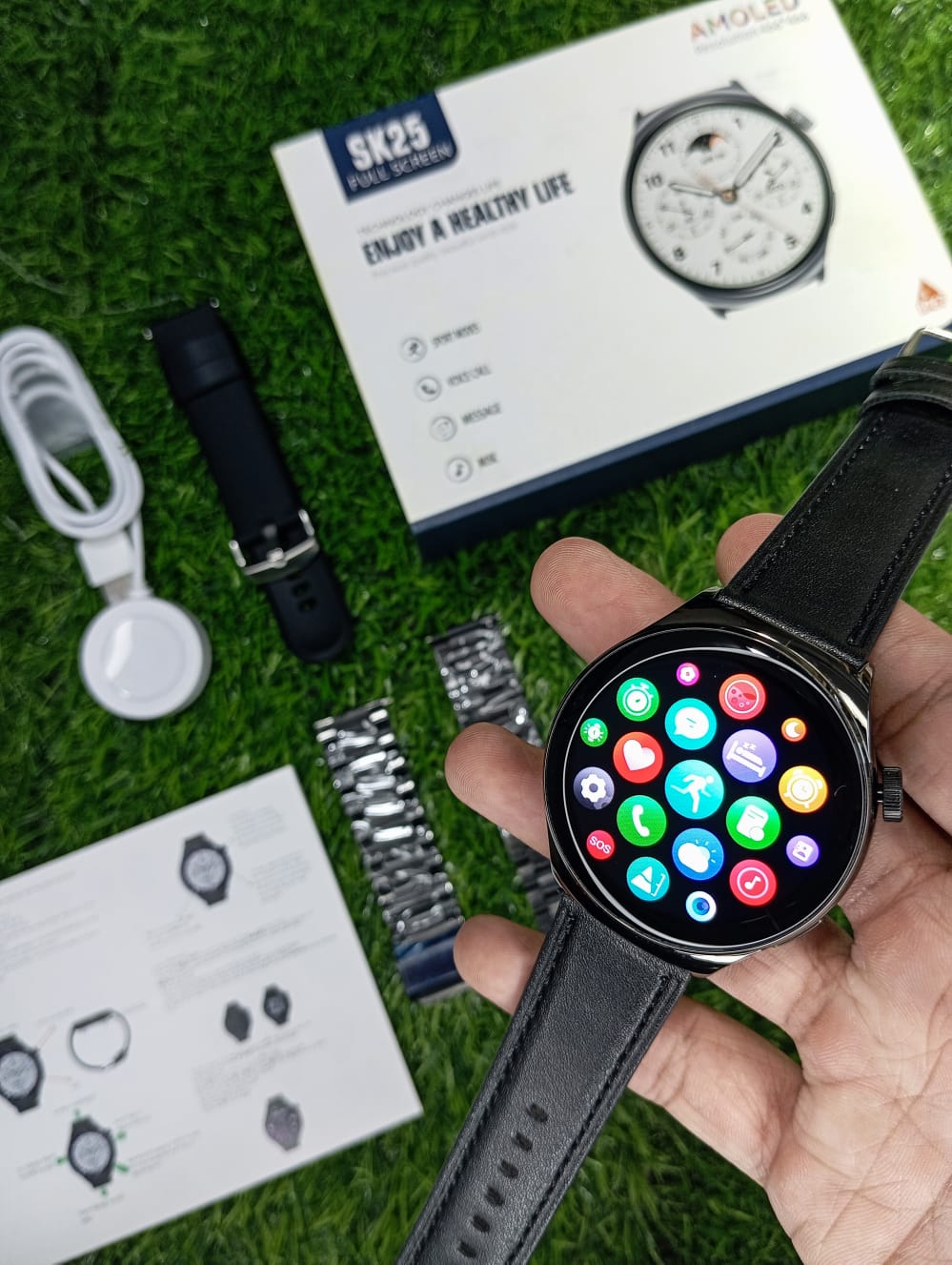 - Bluetooth Connectivity: Sync your SK25 Smartwatch with your smartphone for calls, messages, and app notifications.