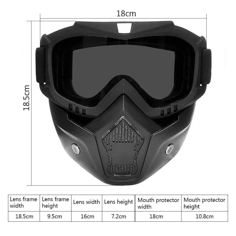 Detachable Biker Face Mask with Rainbow-Shade Goggles | Skull Face Mask for Biker