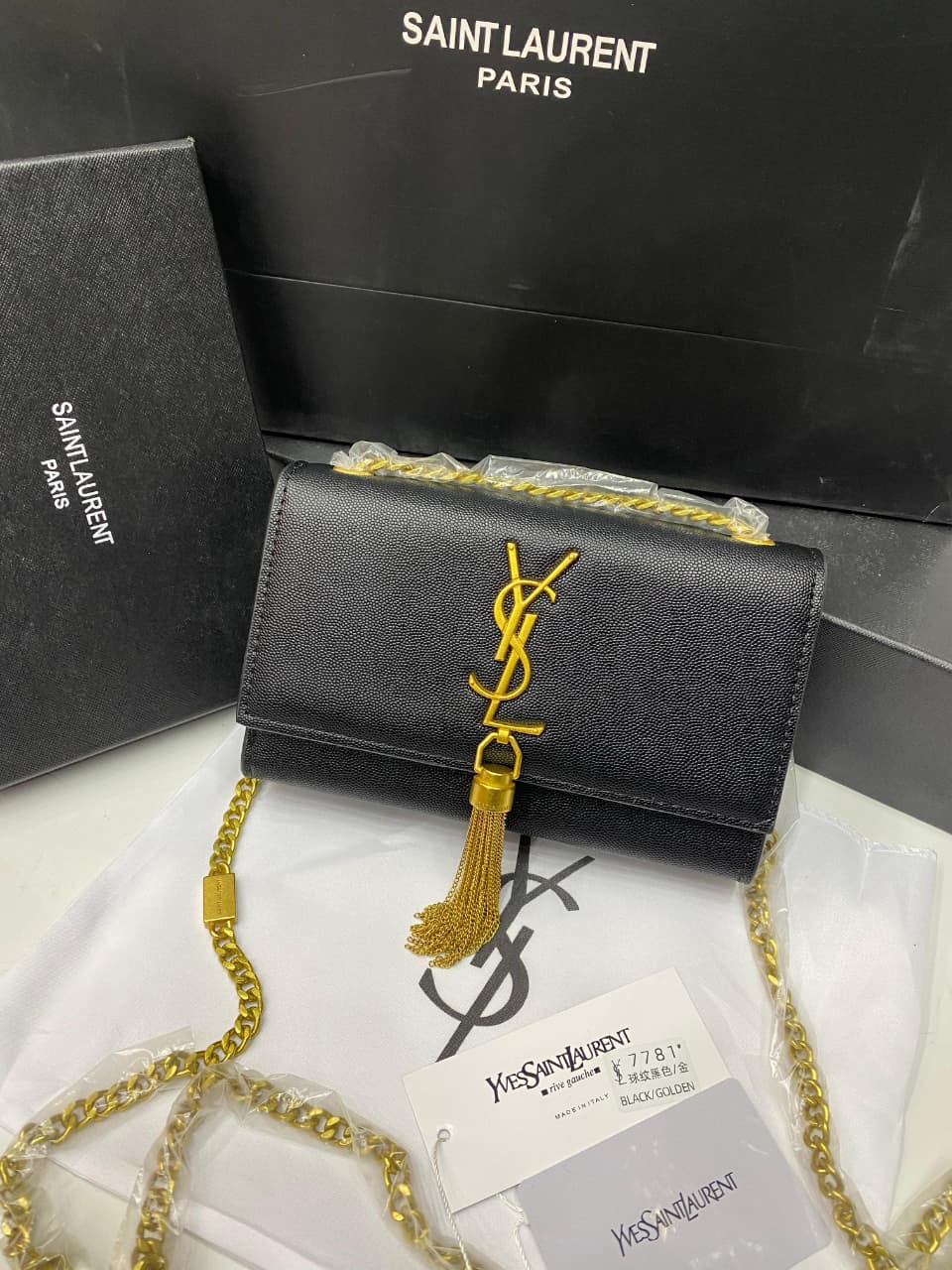 Premium High-Quality YSL Crossbody Bag with Golden Logo & Luxury Accessories